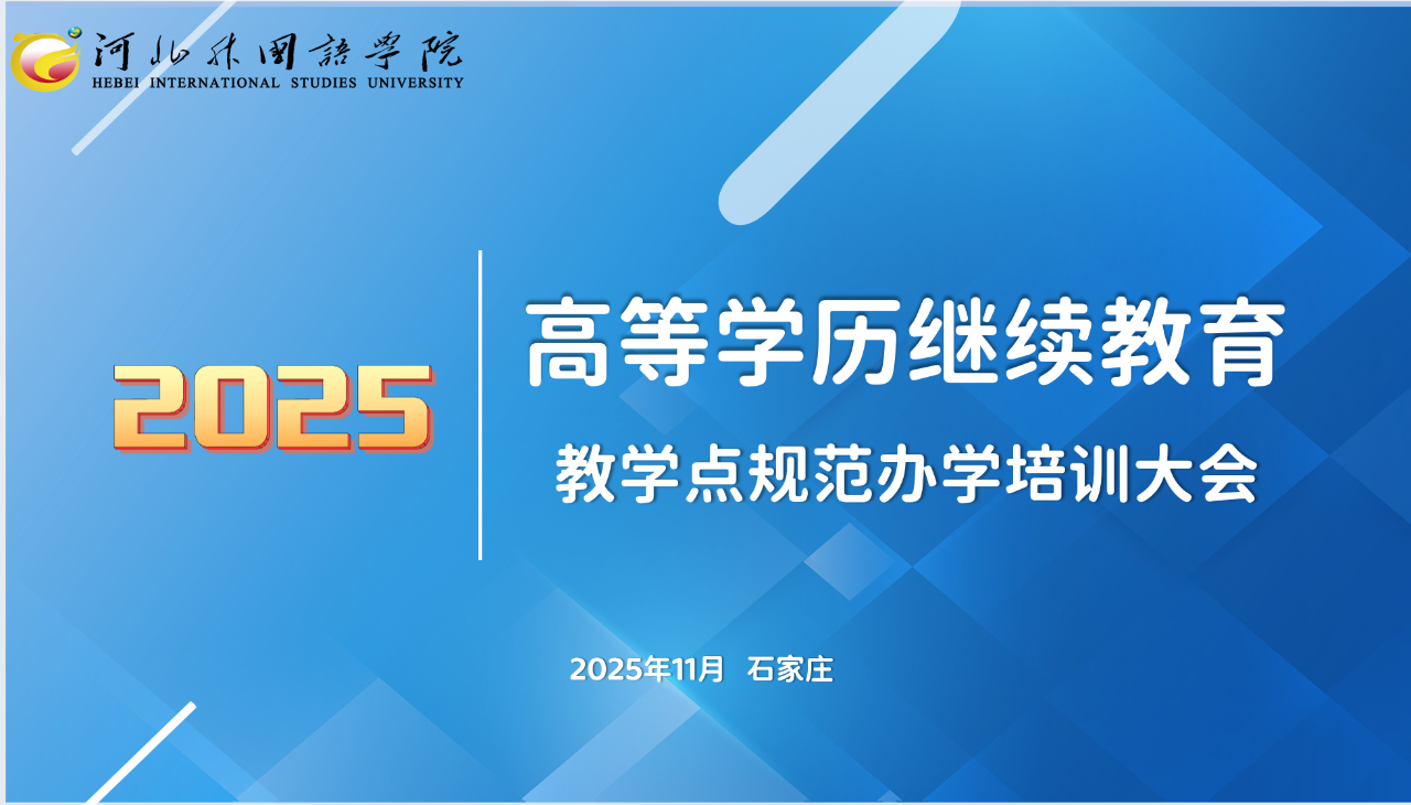 11月12日上午,河北外国语学院继续教育学院召开了2025年高等学历继续教育校外教学点规范办学培训大会。学校党委副书记孙天明、继续教育学院全体教师和校外教学点相关领导、教学管理人员参加了会议。会议由继续教育学院院长苏军霞主持。